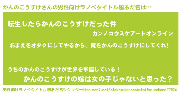 | 女子向けラノベタイトル風あだ名 | 『かんのこうすけ恋絵巻』 |