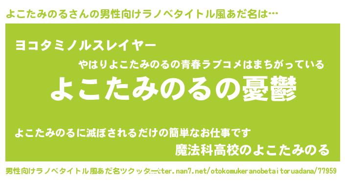 | 女子向けラノベタイトル風あだ名 | 『よこたみのる姫と円卓の騎士』 |