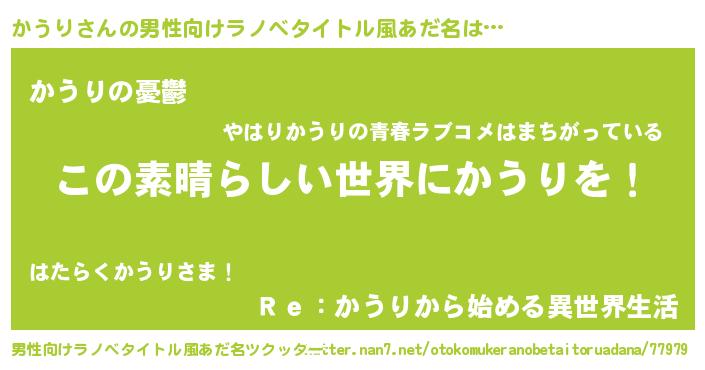 | 意味不明あだ名 | 『住所不定無職かうり(9歳)』『自称かうり』 |