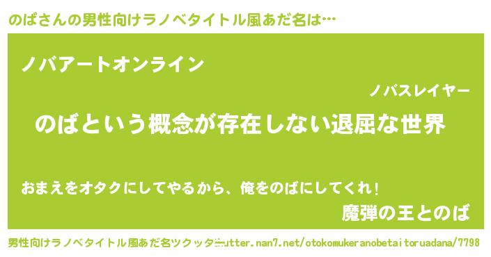 | 女子向けラノベタイトル風あだ名 | 『異世界で失敗しない100ののば』 |