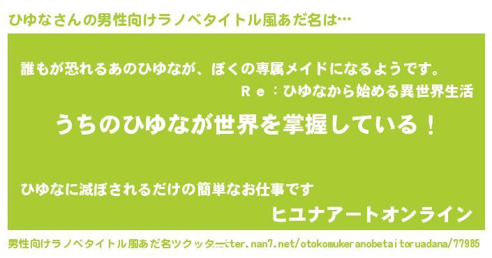 | 欧米人風あだ名 | 『ひゆな・ステッグマイヤー』 |