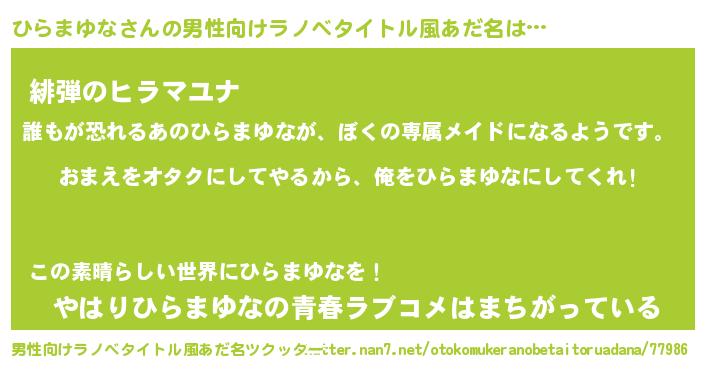 | ヒーロー風カッコイイあだ名 | 『正義の使者ひらまゆな』『仮面ヒラダー』 |