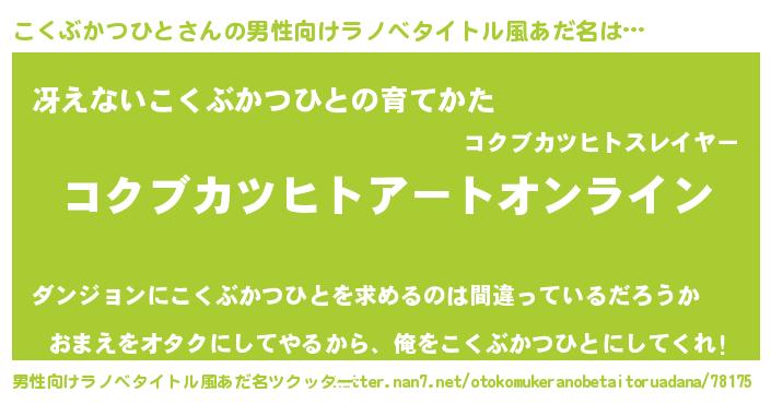| 女子向けラノベタイトル風あだ名 | 『誰かこのこくぶかつひとを説明してください! ~契約から始まるウェディング~』 |