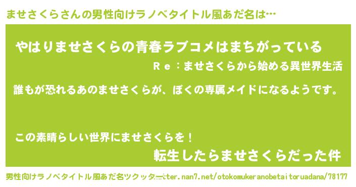 | 女子向けラノベタイトル風あだ名 | 『ませさくらの契約王妃』 |