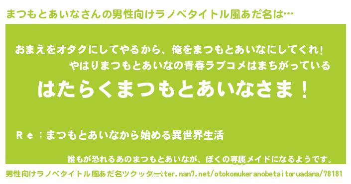| 肩書あだ名 | 『まつもとあいなマネージャー』 |