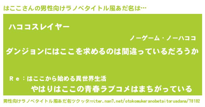 | 女子向けラノベタイトル風あだ名 | 『はここは平凡を望む』『闇のはここ』 |