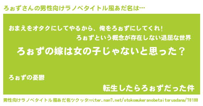 | 女子向けラノベタイトル風あだ名 | 『ろぉず様がみてる』『ろぉず恋絵巻』 |