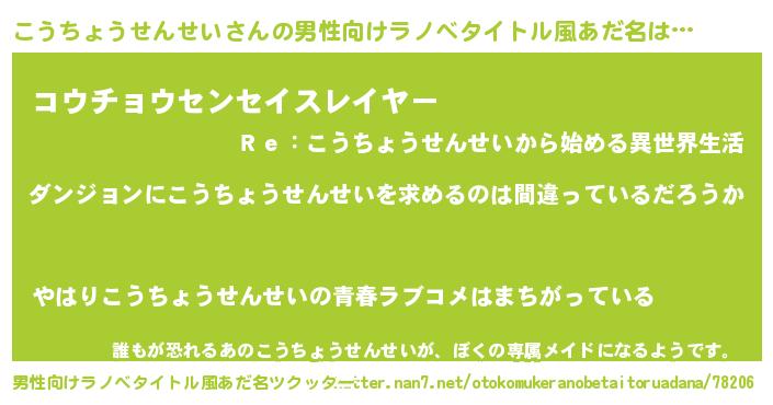 | ヘコむあだ名 | 『こうっ子』『こうちょうせんせい(遠い目)』 |