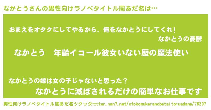 | ヒーロー風カッコイイあだ名 | 『慈愛の使者なかとう』『魔戒騎士ナカ』 |