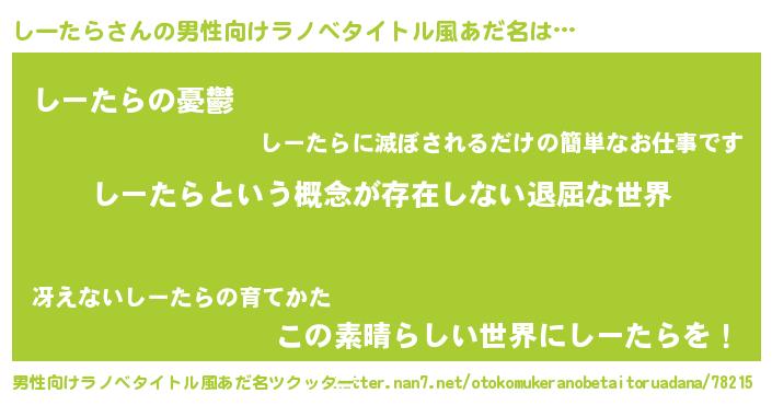 | 伝説のあだ名 | 『聞きしに勝る勇者しーたら』 |