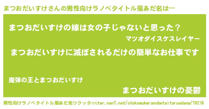 | 女子向けラノベタイトル風あだ名 | 『横柄まつおだいすけと宰相陛下』 |