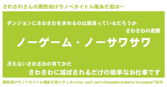 | 女子向けラノベタイトル風あだ名 | 『死神さわさわの再婚』 |