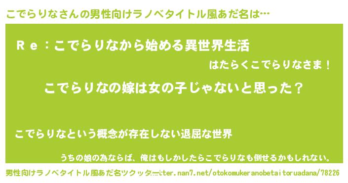| 胡散臭い通販商品みたいなあだ名 | 『伝統あるサプリメント…その名も「こでらりな」』 |