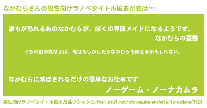 | 女子向けラノベタイトル風あだ名 | 『なかむら伯爵の花嫁』『なかむら恋絵巻』 |