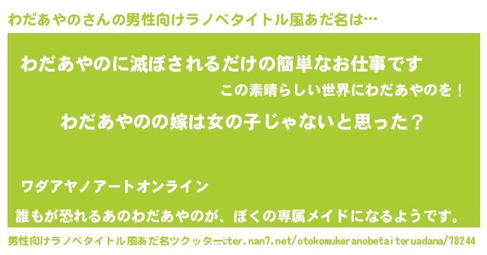 | 胡散臭い通販商品みたいなあだ名 | 『伝統あるサプリメント…その名も「わだあやの」』 |