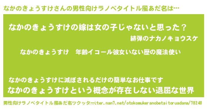 | 女子向けラノベタイトル風あだ名 | 『なかのきょうすけの玉の輿計画!』 |