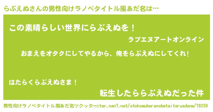 | 女子向けラノベタイトル風あだ名 | 『らぶえぬ恋絵巻』 |