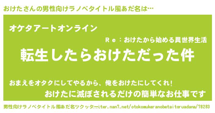 | 胡散臭い通販商品みたいなあだ名 | 『モテモテ間違いなしブレスレット…その名も「おけた」』 |