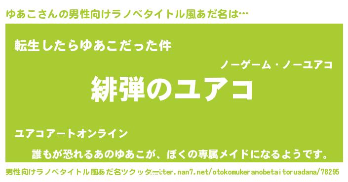 | ヘコむあだ名 | 『ゆあこ(苦笑)』『ゆあっふぃ~』 |