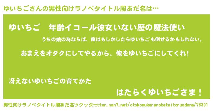 | 女子向けラノベタイトル風あだ名 | 『ゆいちご恋絵巻』『ゆいちご伯爵の花嫁』 |