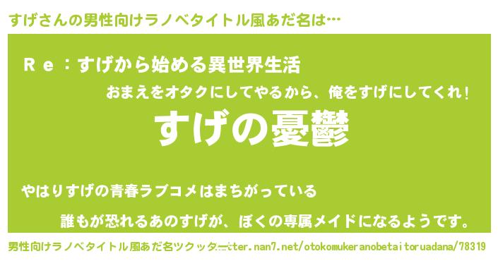 | ヘコむあだ名 | 『すげにー』『すげ(笑)』『なまこ酢』 |