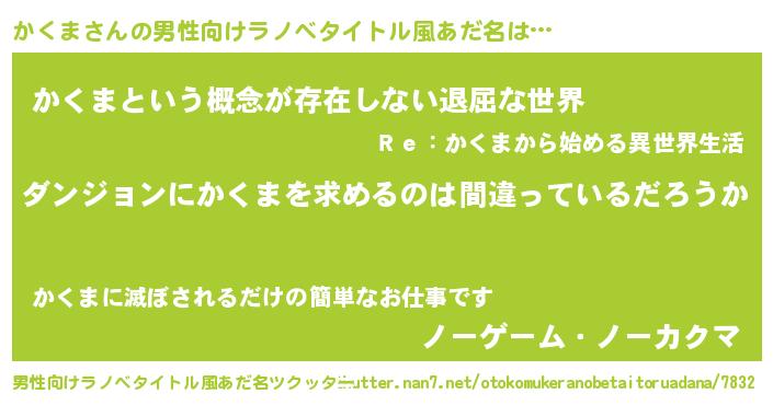 | 女子向けラノベタイトル風あだ名 | 『かくまは平凡を望む』『かくま恋絵巻』 |