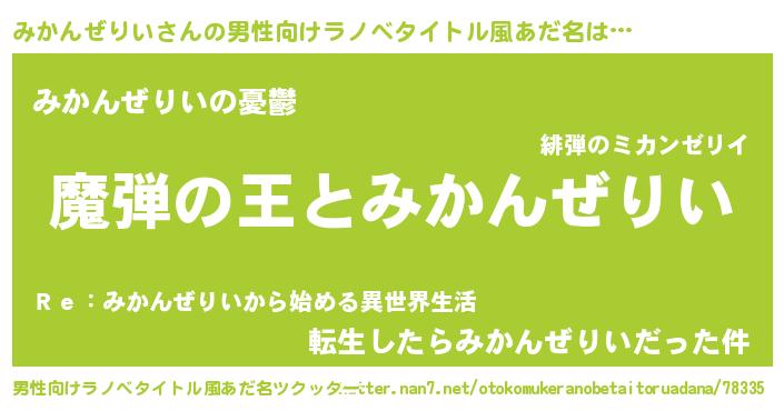 | 女子向けラノベタイトル風あだ名 | 『みかんぜりいが死なない童話 林檎のみかんぜりいの診療簿』 |