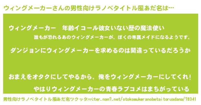 | 女子向けラノベタイトル風あだ名 | 『ウィングメーカーは平凡を望む』 |