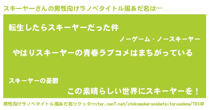 | 女子向けラノベタイトル風あだ名 | 『スキーヤーの雑貨屋さん』 |