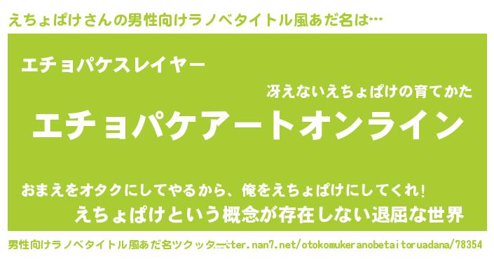 | 肩書あだ名 | 『えちょぱけ社長』『えちょぱけ中尉』 |