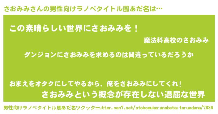 | 女子向けラノベタイトル風あだ名 | 『さおみみは平凡を望む』 |
