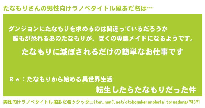 | 胡散臭い通販商品みたいなあだ名 | 『伝統あるサプリメント…その名も「たなもり」』 |