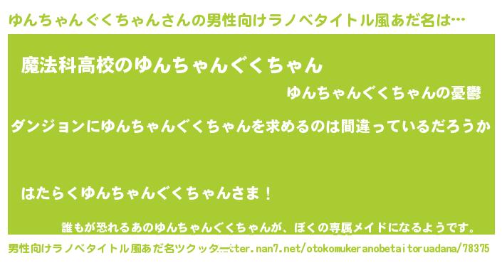 | 胡散臭い通販商品みたいなあだ名 | 『伝統あるサプリメント…その名も「ゆんちゃんぐくちゃん」』 |