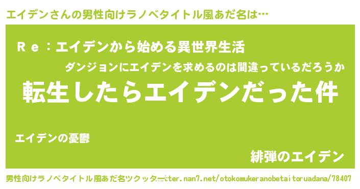 | 意味不明あだ名 | 『なめこ科エイデン属』『自称エイデン』 |
