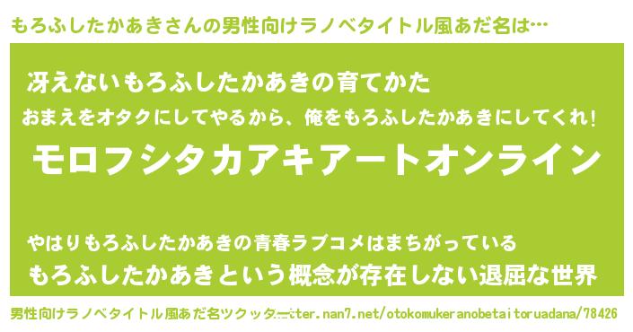 | 女子向けラノベタイトル風あだ名 | 『誰かこのもろふしたかあきを説明してください! ~契約から始まるウェディング~』 |