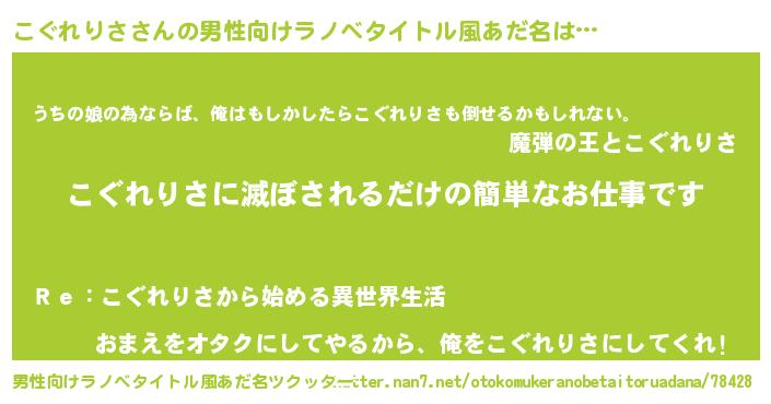 | ヒーロー風カッコイイあだ名 | 『ウルトラこぐれりさマン』 |