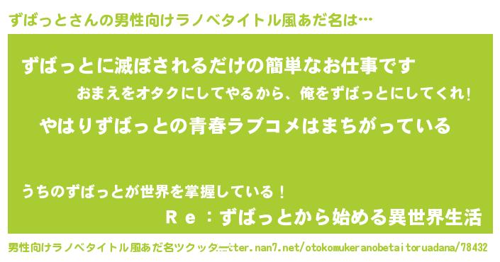 | 胡散臭い通販商品みたいなあだ名 | 『世界が平和になる高級そうな皿…その名も「ずばっと」』 |