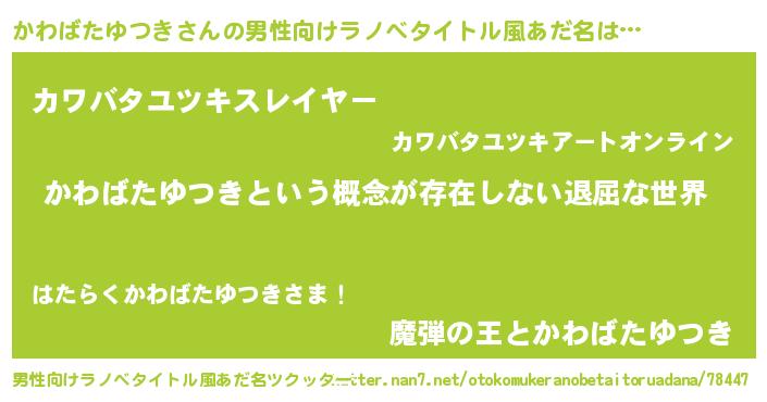 | 女子向けラノベタイトル風あだ名 | 『異世界で失敗しない100のかわばたゆつき』 |