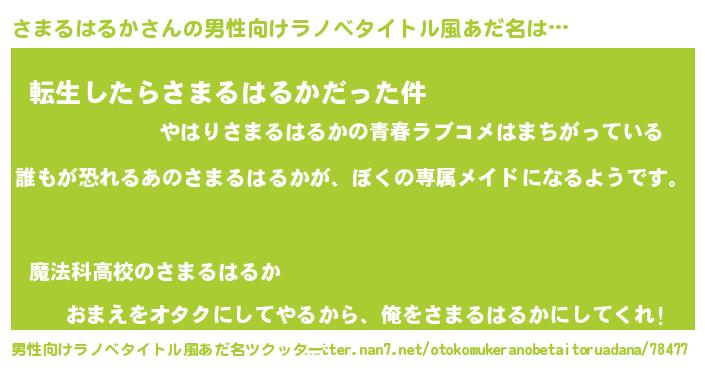 | 意味不明あだ名 | 『永久保存さまるはるか』 |