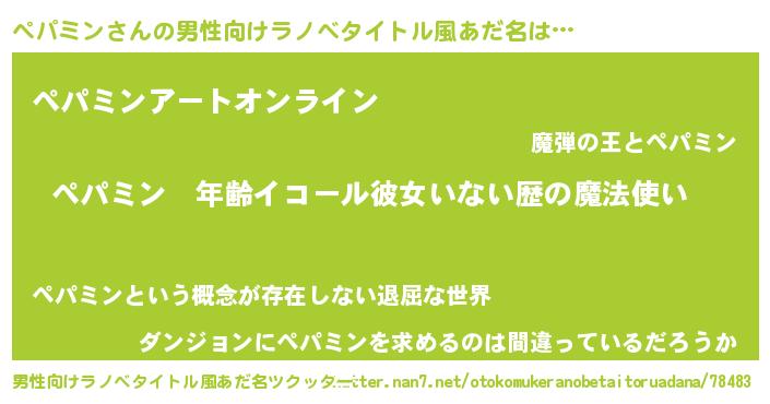 | 女子向けラノベタイトル風あだ名 | 『ペパミンの玉の輿計画!』 |