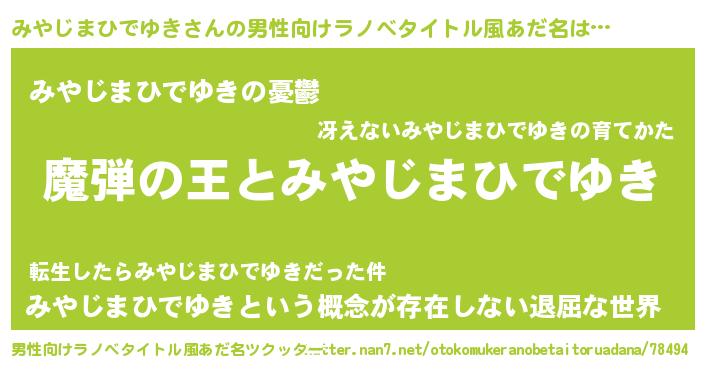 | 意味不明あだ名 | 『住所不定無職みやじまひでゆき(93歳)』 |