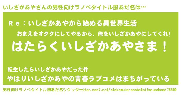 | 意味不明あだ名 | 『自称いしざかあや』 |