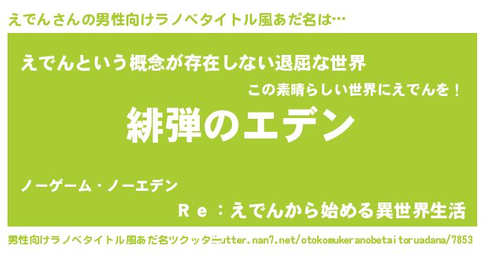 | ヒーロー風カッコイイあだ名 | 『ネオエデン』『超時空戦士エデン』 |