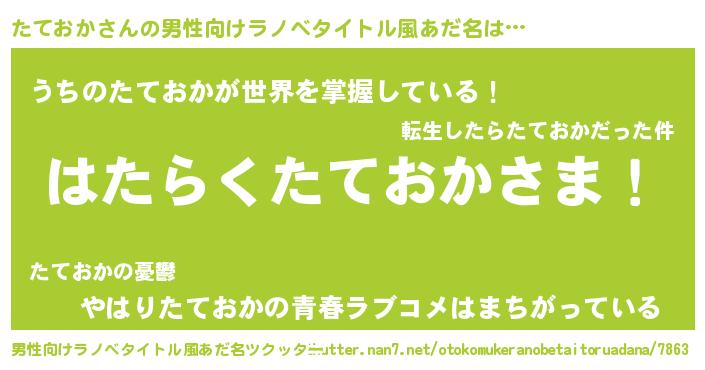 | 意味不明あだ名 | 『たておかフォーエバー』 |