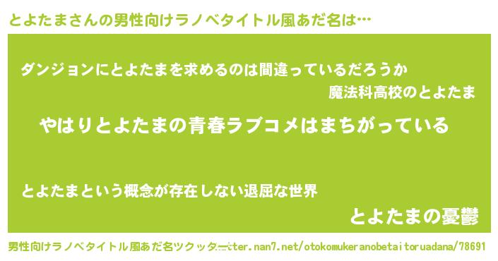 | 女子向けラノベタイトル風あだ名 | 『とよたまの雑貨屋さん』 |
