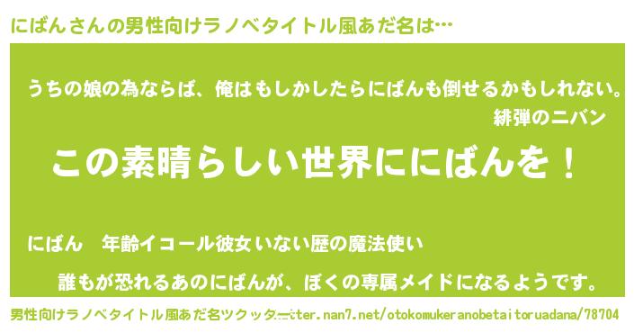 | 意味不明あだ名 | 『住所不定無職にばん(71歳)』 |