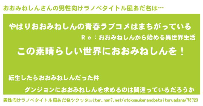 | 意味不明あだ名 | 『住所不定無職おおみねしん(2歳)』 |