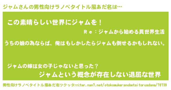 | 胡散臭い通販商品みたいなあだ名 | 『運命の人と巡り会える高級そうな絵画…その名も「ジャム」』 |