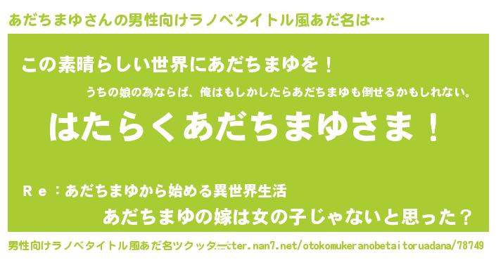 | 意味不明あだ名 | 『住所不定無職あだちまゆ(81歳)』 |