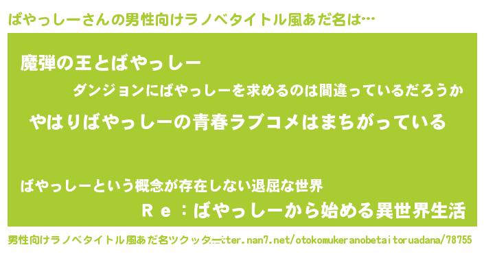 | 意味不明あだ名 | 『ばやっしーフォーエバー』 |